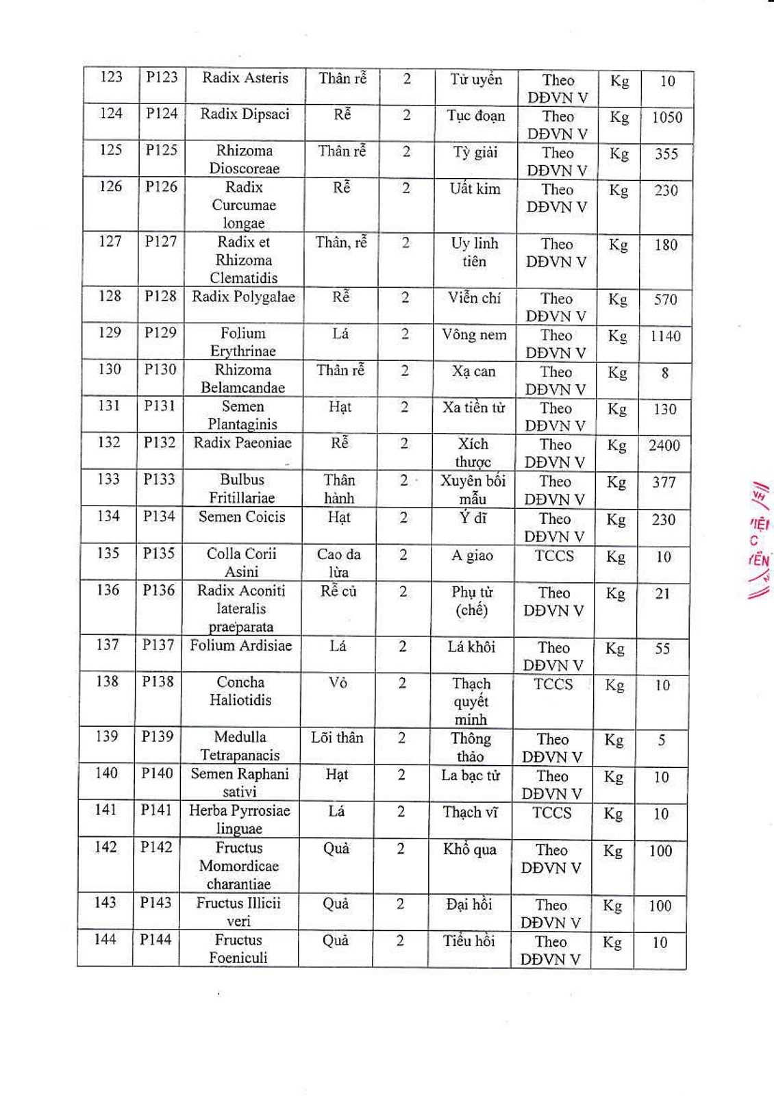 THÔNG BÁO MỜI CHÀO GIÁ DƯỢC LIỆU