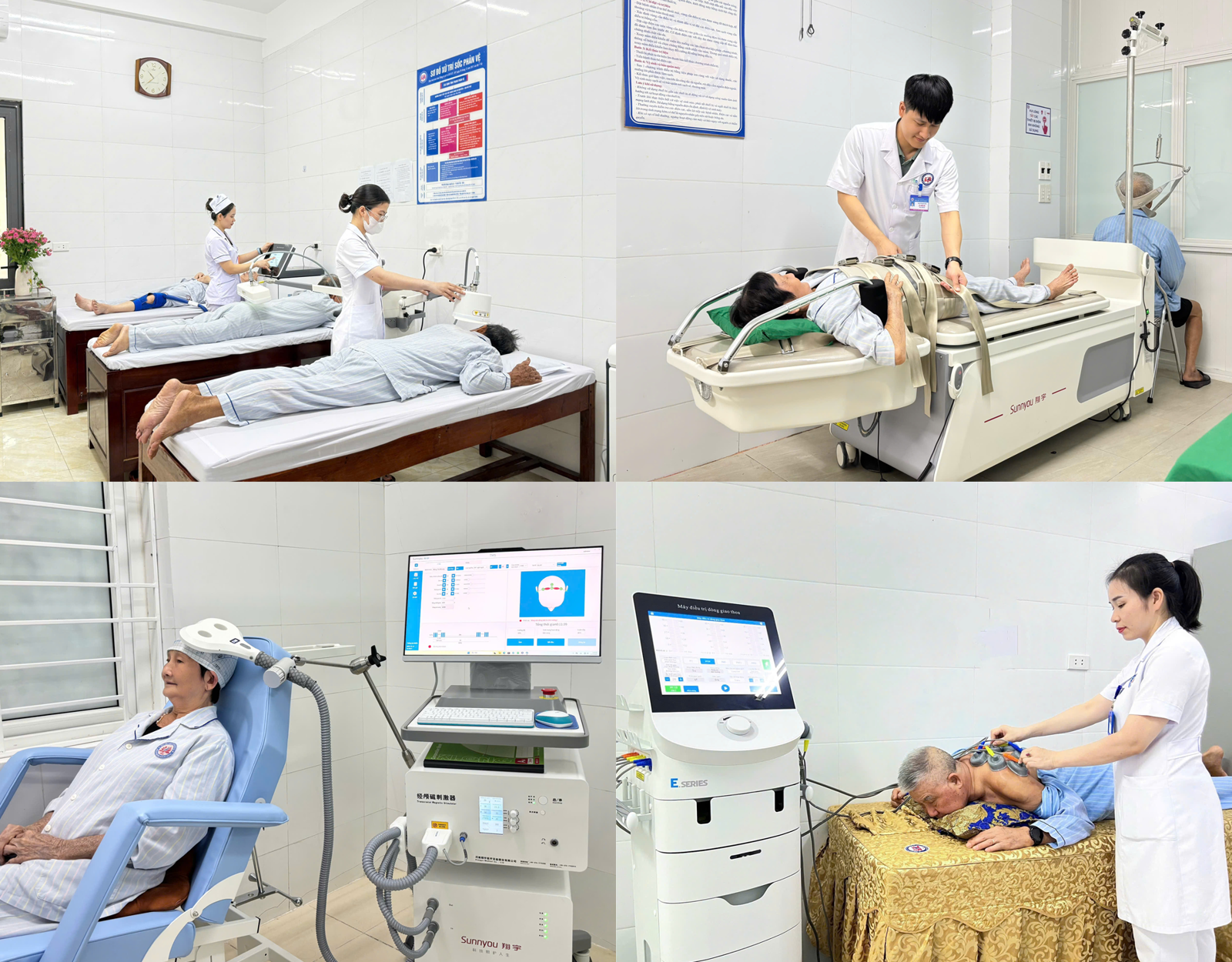 Song song, hàng loạt thiết bị hiện đại như máy điện châm đa năng, sóng xung kích, siêu âm điều trị, oxy cao áp, kéo giãn cột sống, máy sóng ngắn… được đầu tư đồng bộ, giúp kết hợp hiệu quả giữa y học cổ truyền và y học hiện đại.